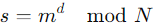 이 서명을 검증하는 사람은 공개키 e 를 사용하여 서명 값을 검증한다.